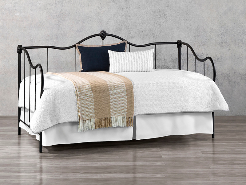 The Ambiance day bed adds subtle elegance and deliberate style creating the quality of a picturesque, old-world art piece to the modern world with upgrades like unexpected curves, minimalistic simplicity, and limited ornamentation that highlight the dignity and refinement of the iron bed design. This old-meets-new combination will steal the show or blend effortlessly into a variety of existing décors.