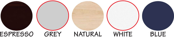 - Natural, White, Espresso, Grey and Blue