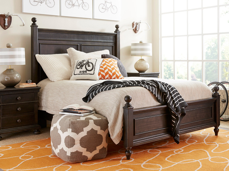 Not all children's furniture collections include a Queen-sized bed, but the Elizabeth Collection does! The Elizabeth Panel Bed offers plenty of space for dreams to take flight, and the sizeable headboard and footboard display classic framed panels flanked with square posts. The posts are topped off with large round finials, creating a dramatic twist on the traditional design.