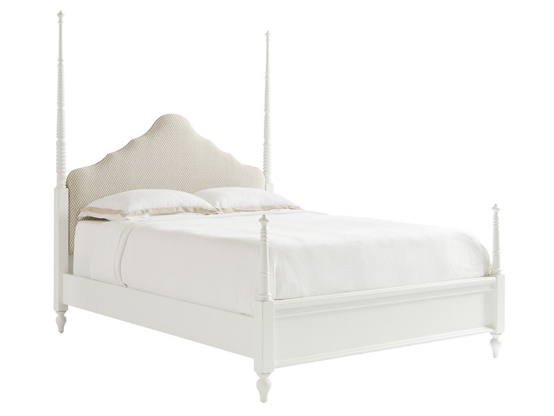 The Sugar Cone upholstery on the headboard accentuates its arched shape. On either side of the headboard, the spindled posters rise far above the bed, for an impressive silhouette. In case you want to change it up, though, small finials are included, allowing the bed to easily be converted to a standard design.