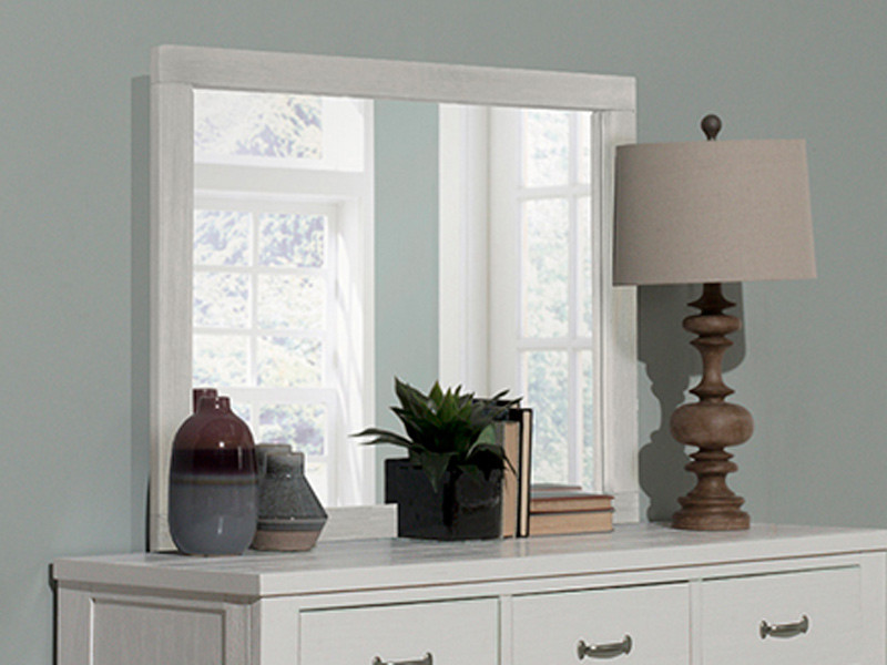 The kiln-dried Pine that frames the mirror itself is finished with a special custom process that's both durable and attractive, offering a weather-beaten appeal. Seen here in a weathered White painted finish, this mirror is also available in Driftwood or Espresso.